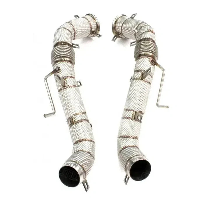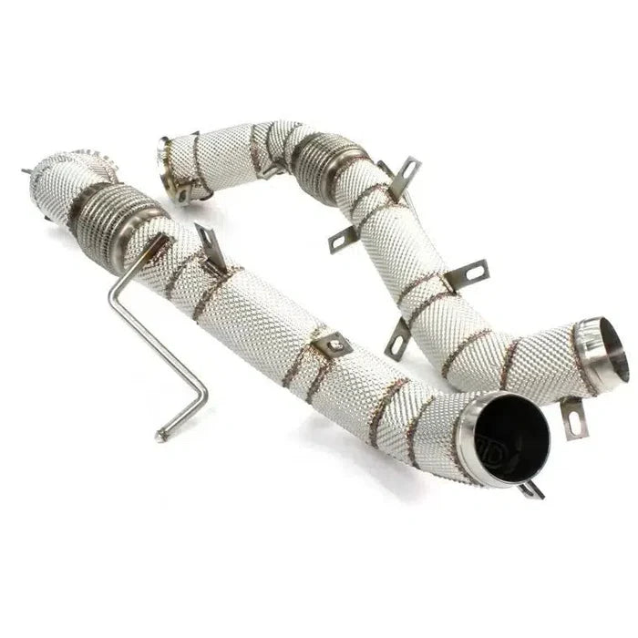 Upgrade your McLaren 600LT with full catless downpipes featuring integrated heat shields for a high-performance exhaust upgrade. Designed to improve airflow and maximize engine output, these downpipes deliver a more aggressive sound and sharper throttle response.